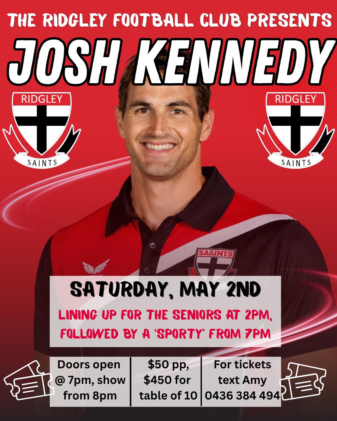 7pm-8pm: Photo opportunity and 8pm onwards: Josh Kennedy will share his story and insights, followed by Q&A