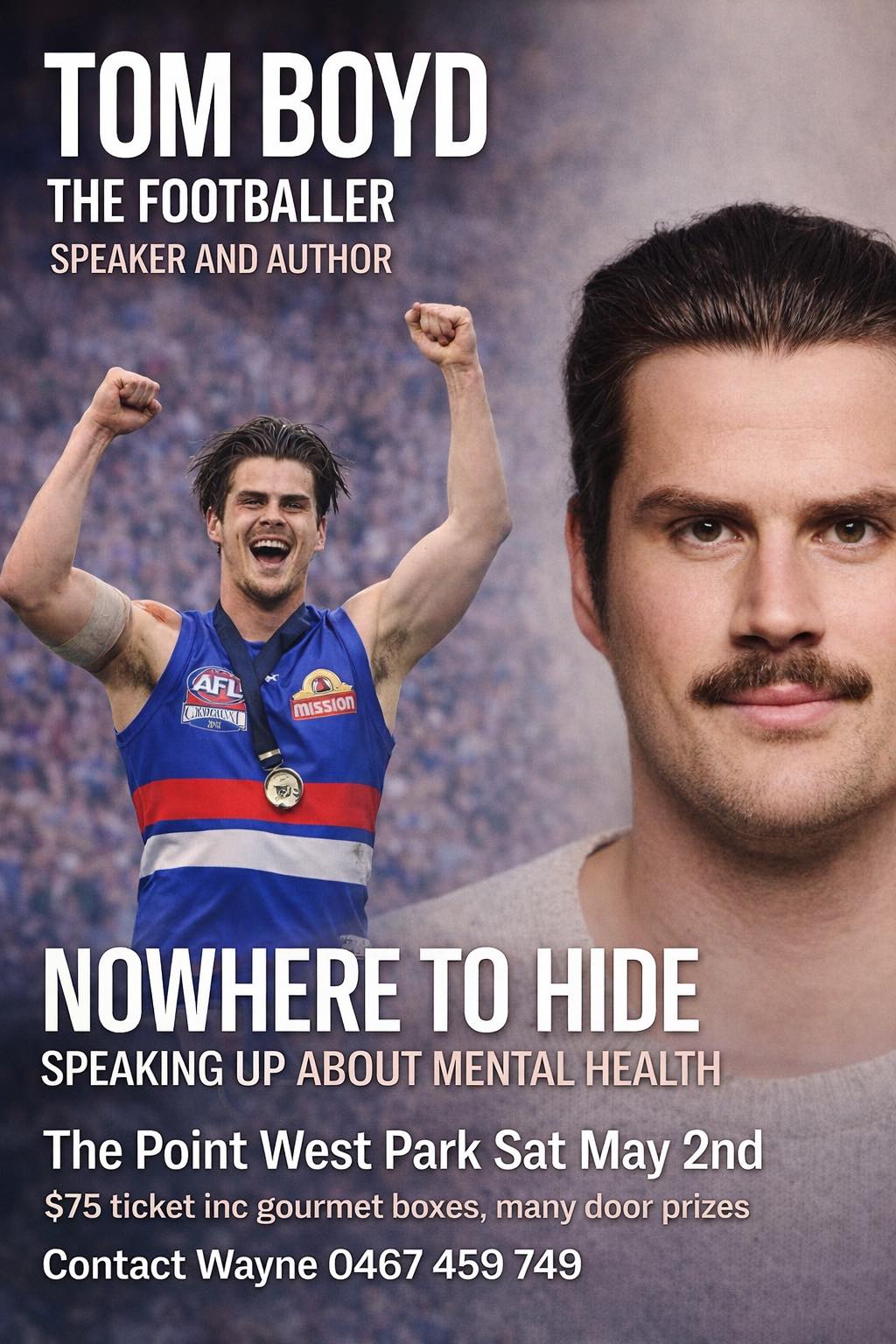 Tom’s retirement from the game a year later, was due to his mental health. Tom sought help and now lives a great life today as a result. He is a husband, father, author and has a dog. He travels Australia spreading his unique story.