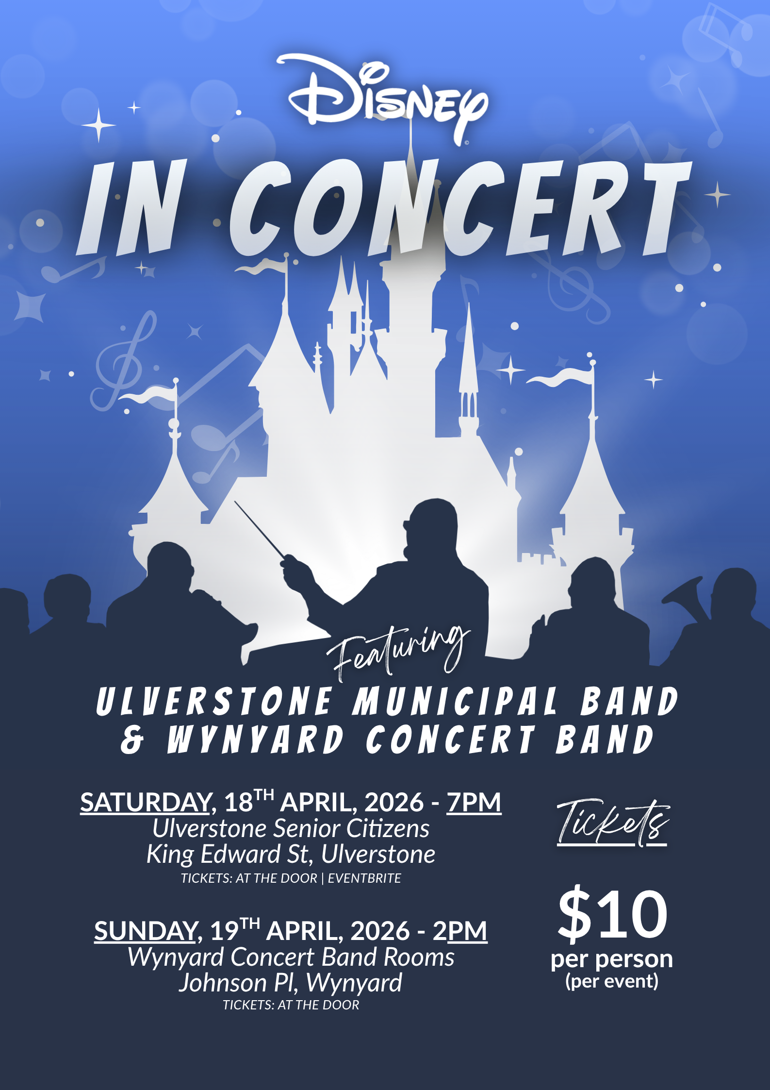 Disney in Concert is coming to the coast, featuring the incredible Ulverstone Municipal Band and the Wynyard Concert Band.