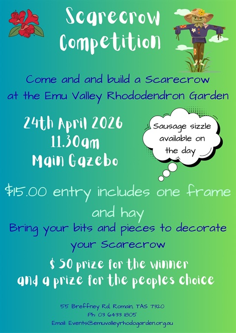 Come along and build your own scarecrow for just $15. Cost includes one scarecrow frame, as well as the hay to build your scarecrow! You just need to bring your bits and pieces to decorate your scarecrow. There will be a $50 prize for the winner.