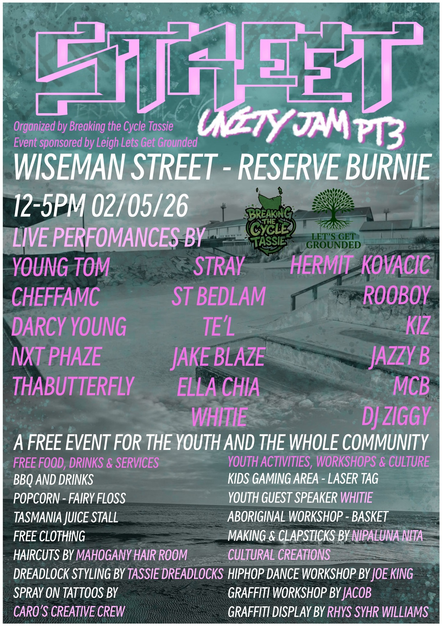 Let’s come together for the Street Unity Jam Pt 3 at the Wiseman Street Reserve in Shorewell, on Saturday the 2nd of May!