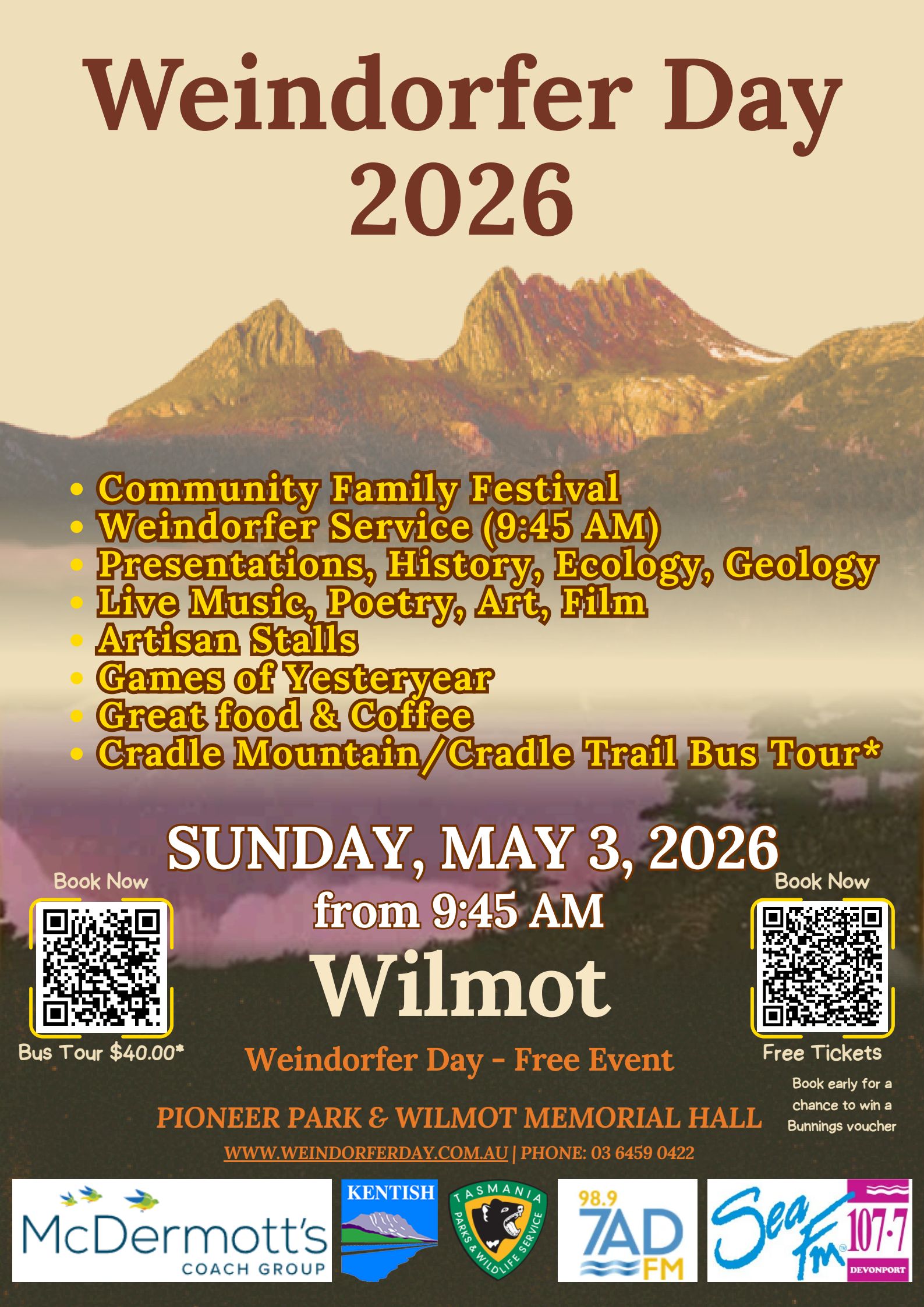 Come along to Pioneer Park, Wilmot and celebrate Cradle Mountain’s conservation champions, Gutav and Kate Wiendorfer at the Weindorfer Day Festival, on Sunday the 3rd of May.
