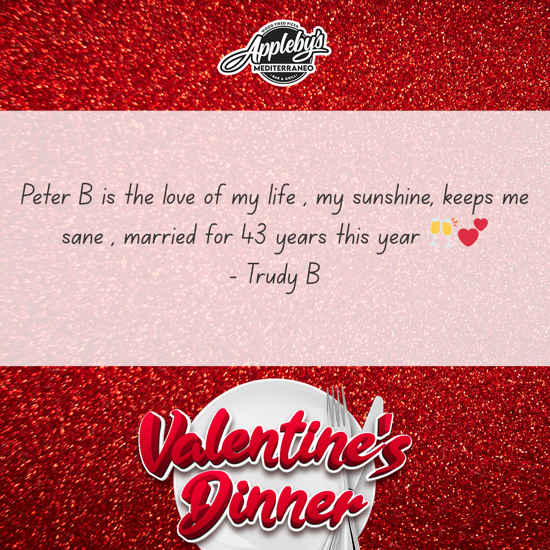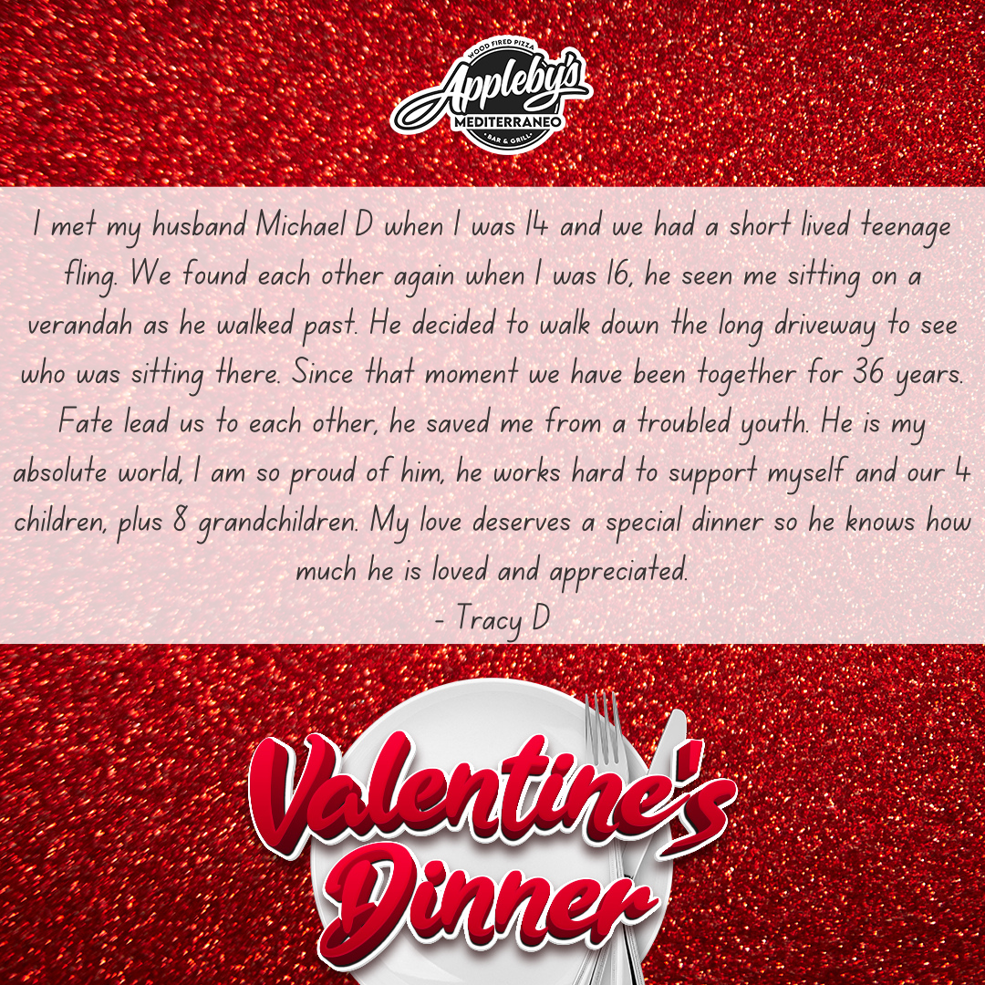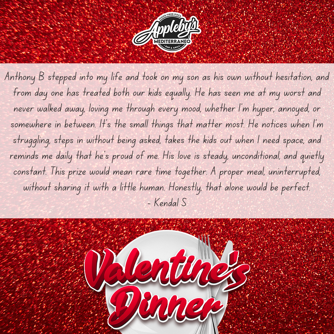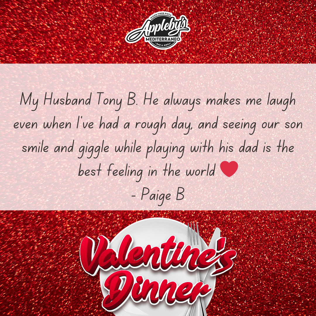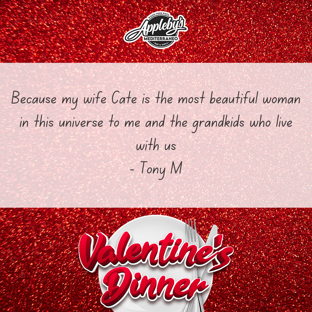What You Could Win Selected entries will be shared right here, amplified on air for everyone to hear. Plus you could win an exclusive dining experience at Appleby’s Mediterraneo Bar and Grill, the perfect destination for life’s most meaningful celebrations.