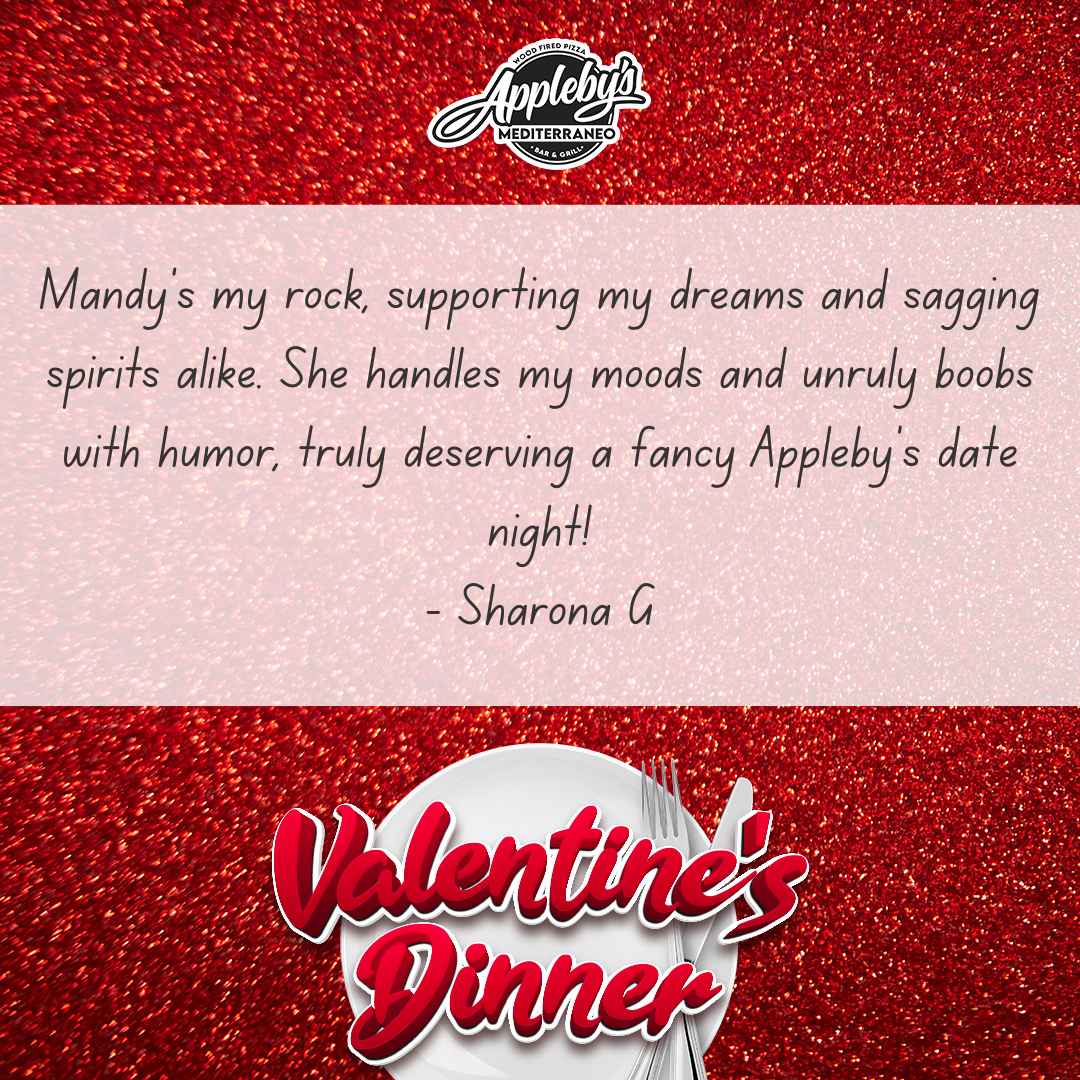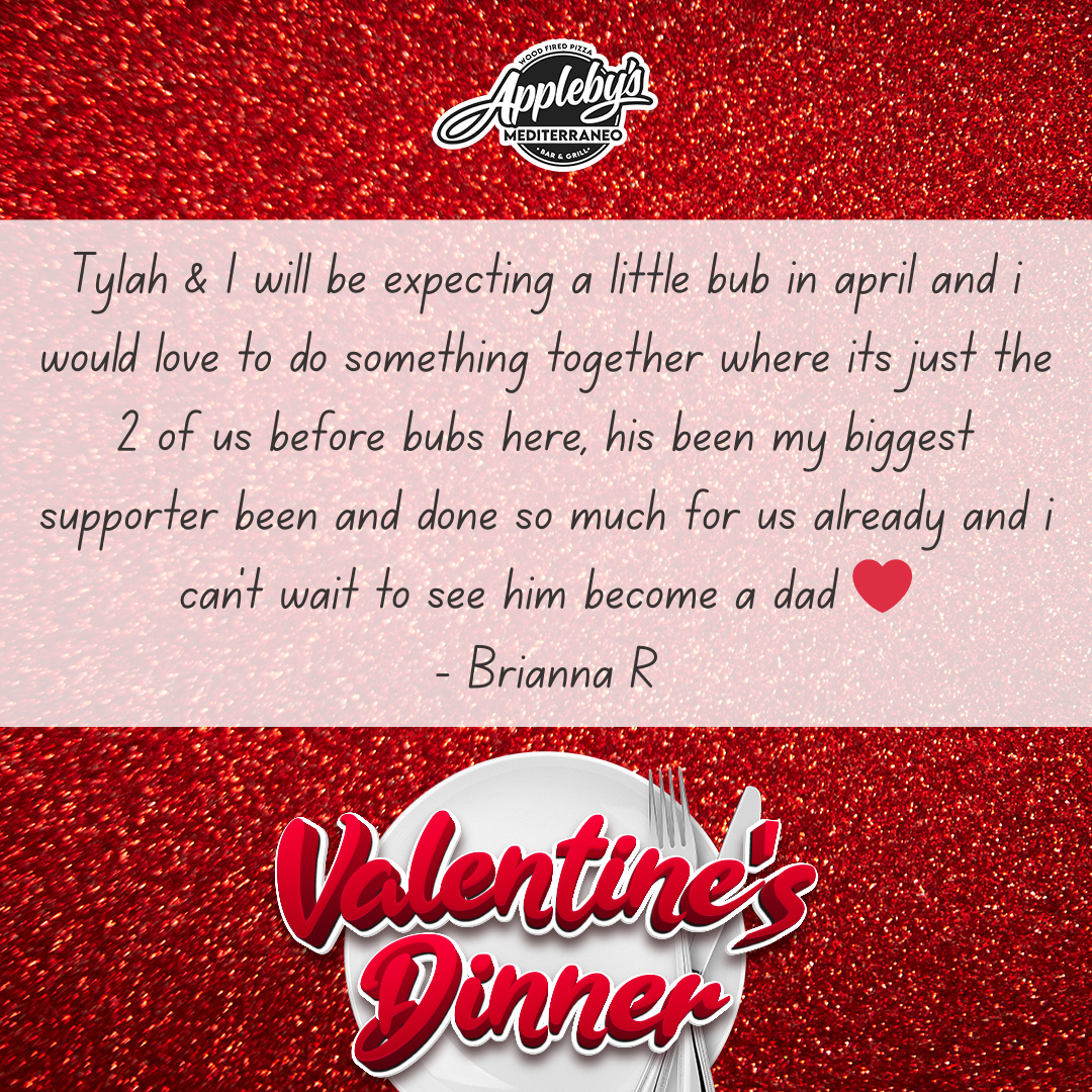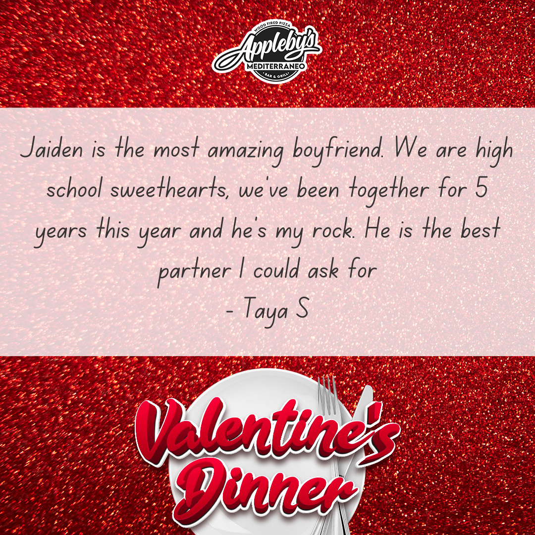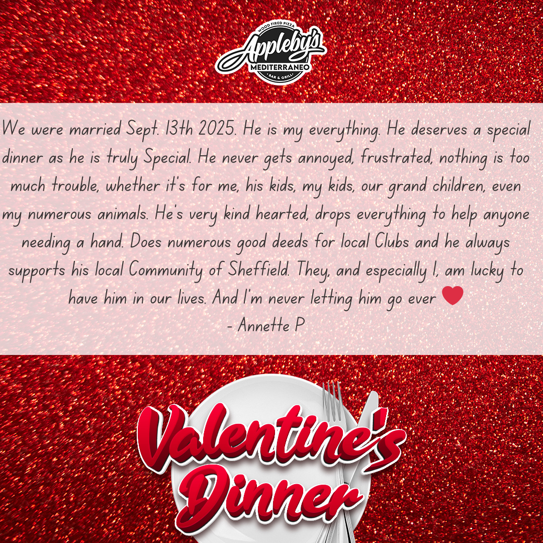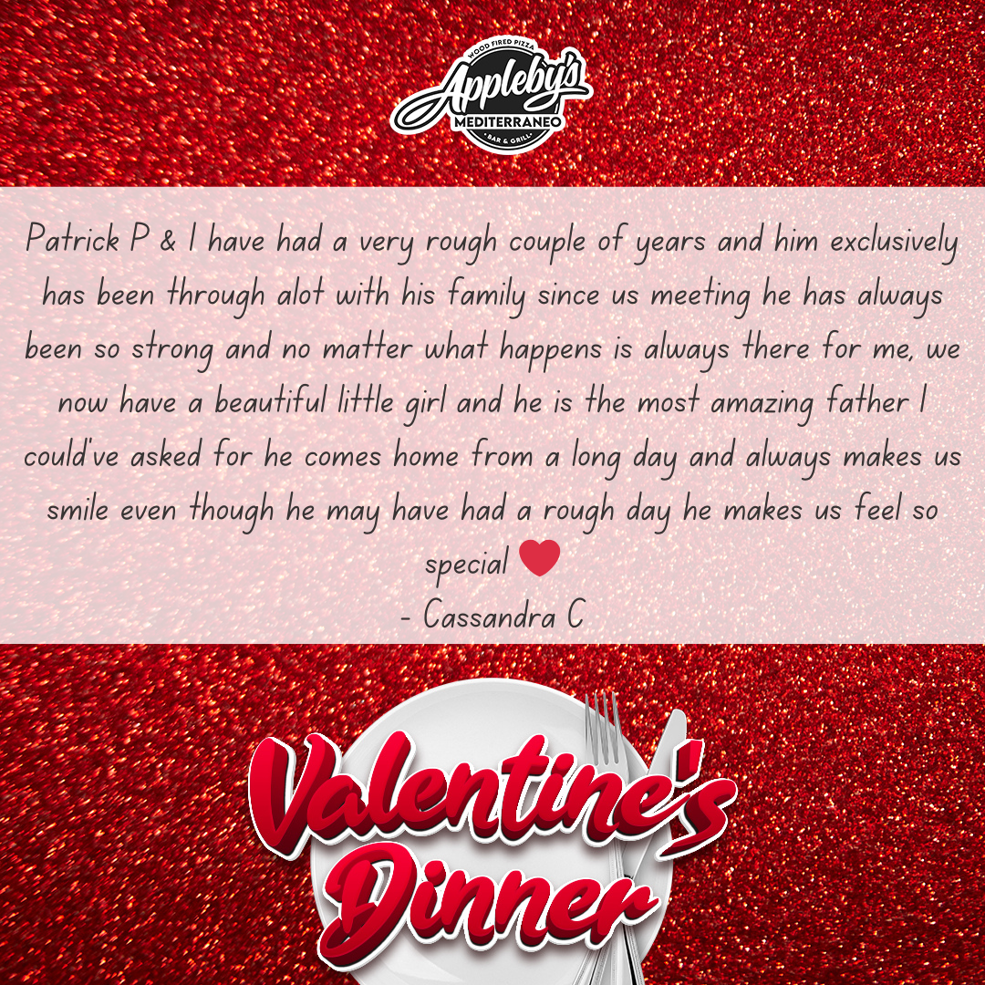 What You Could Win Selected entries will be shared right here, amplified on air for everyone to hear. Plus you could win an exclusive dining experience at Appleby’s Mediterraneo Bar and Grill, the perfect destination for life’s most meaningful celebrations.