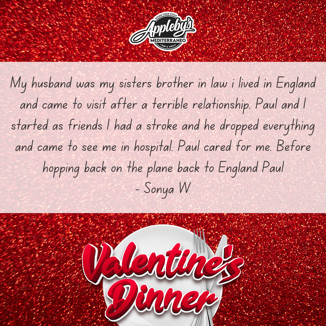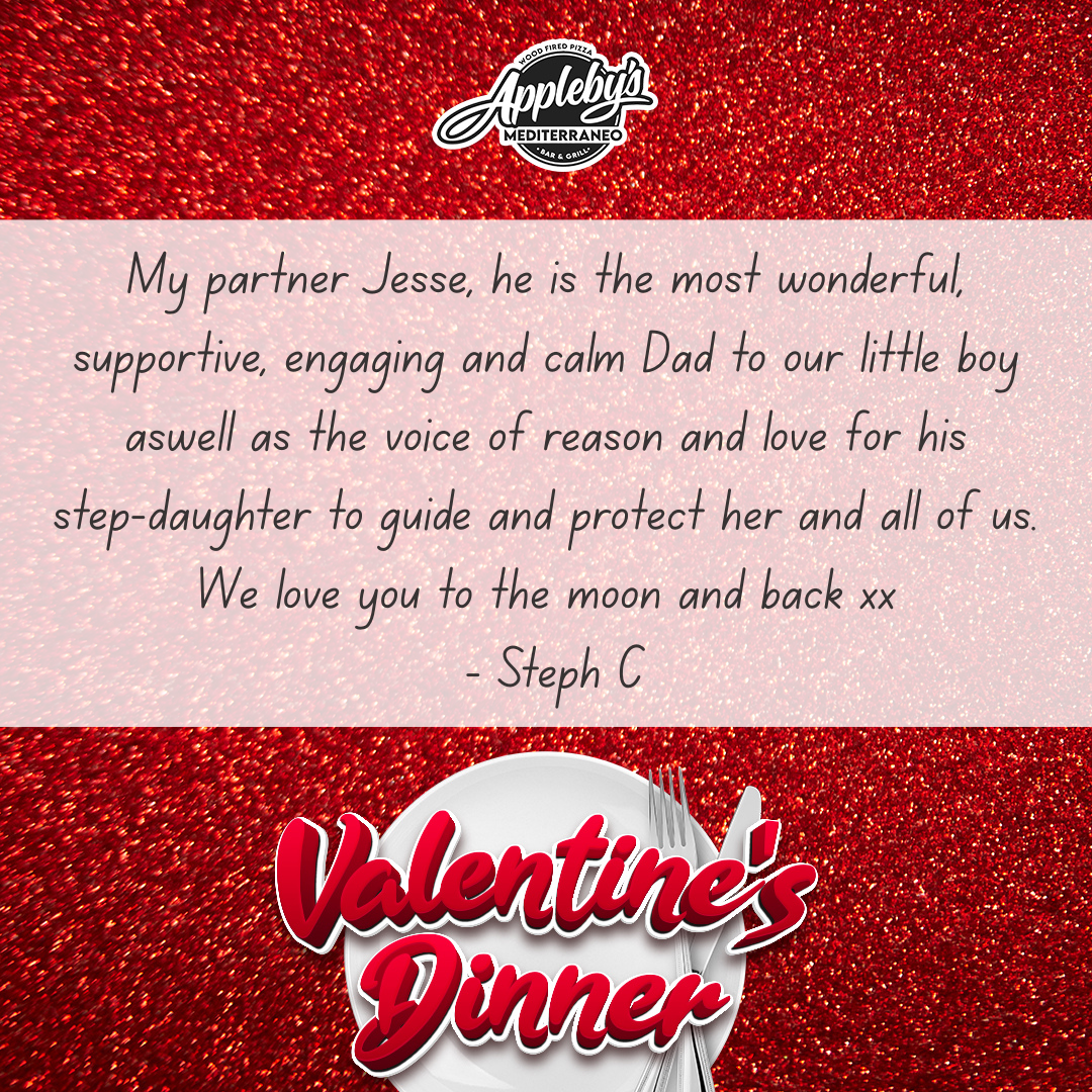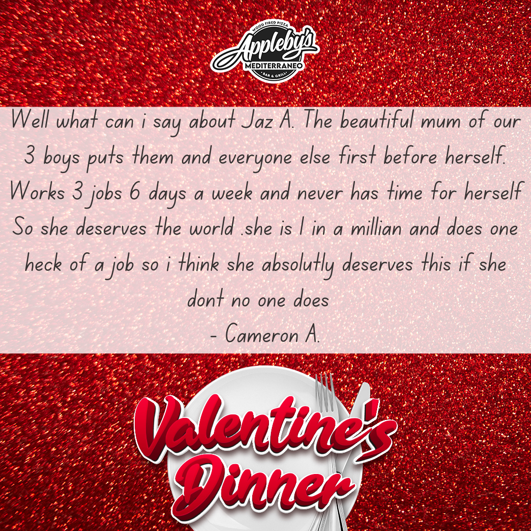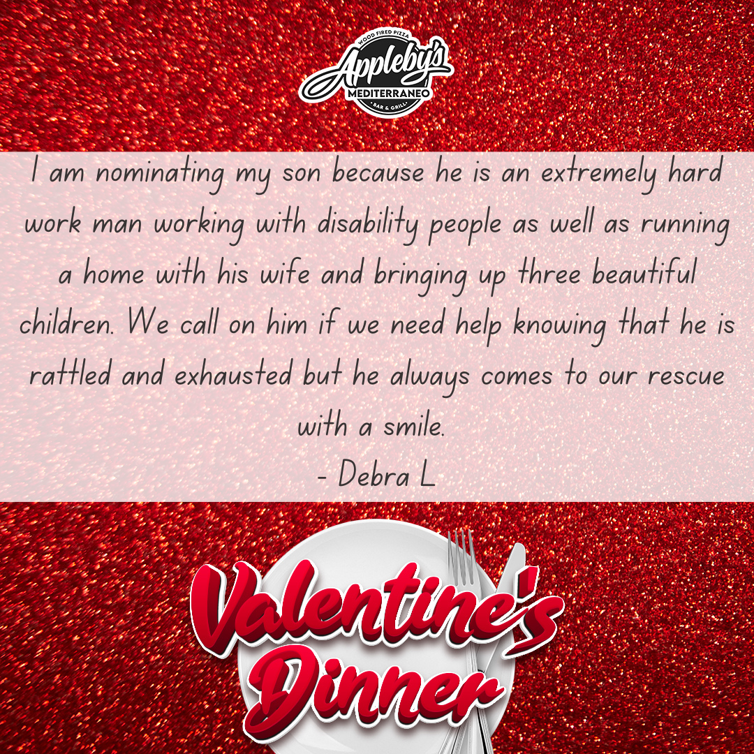 What You Could Win Selected entries will be shared right here, amplified on air for everyone to hear. Plus you could win an exclusive dining experience at Appleby’s Mediterraneo Bar and Grill, the perfect destination for life’s most meaningful celebrations.