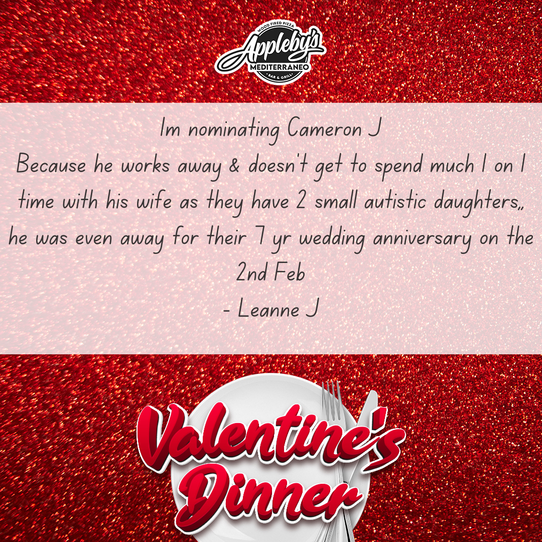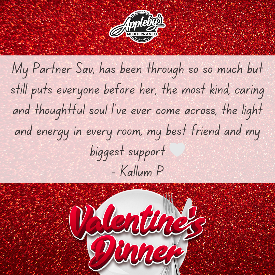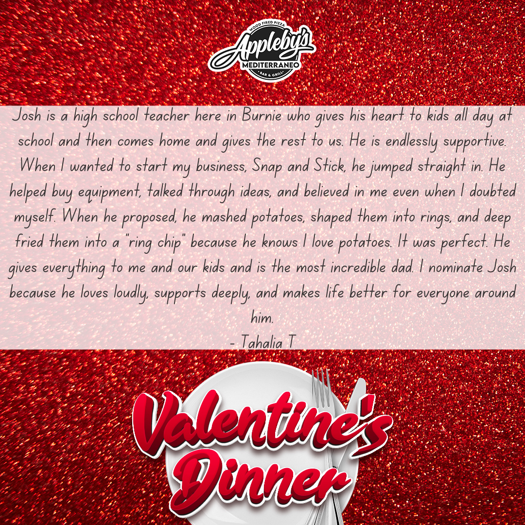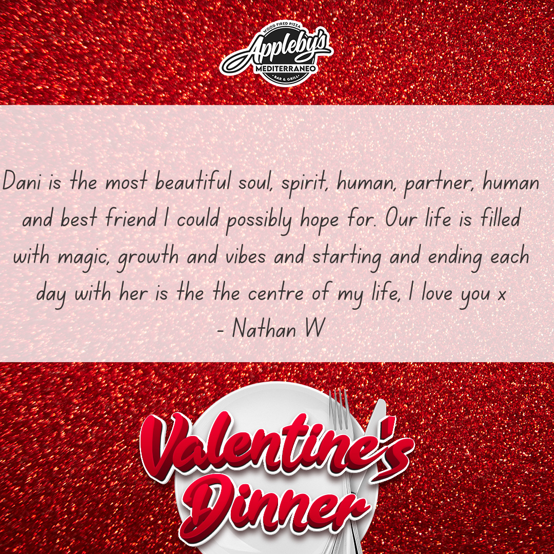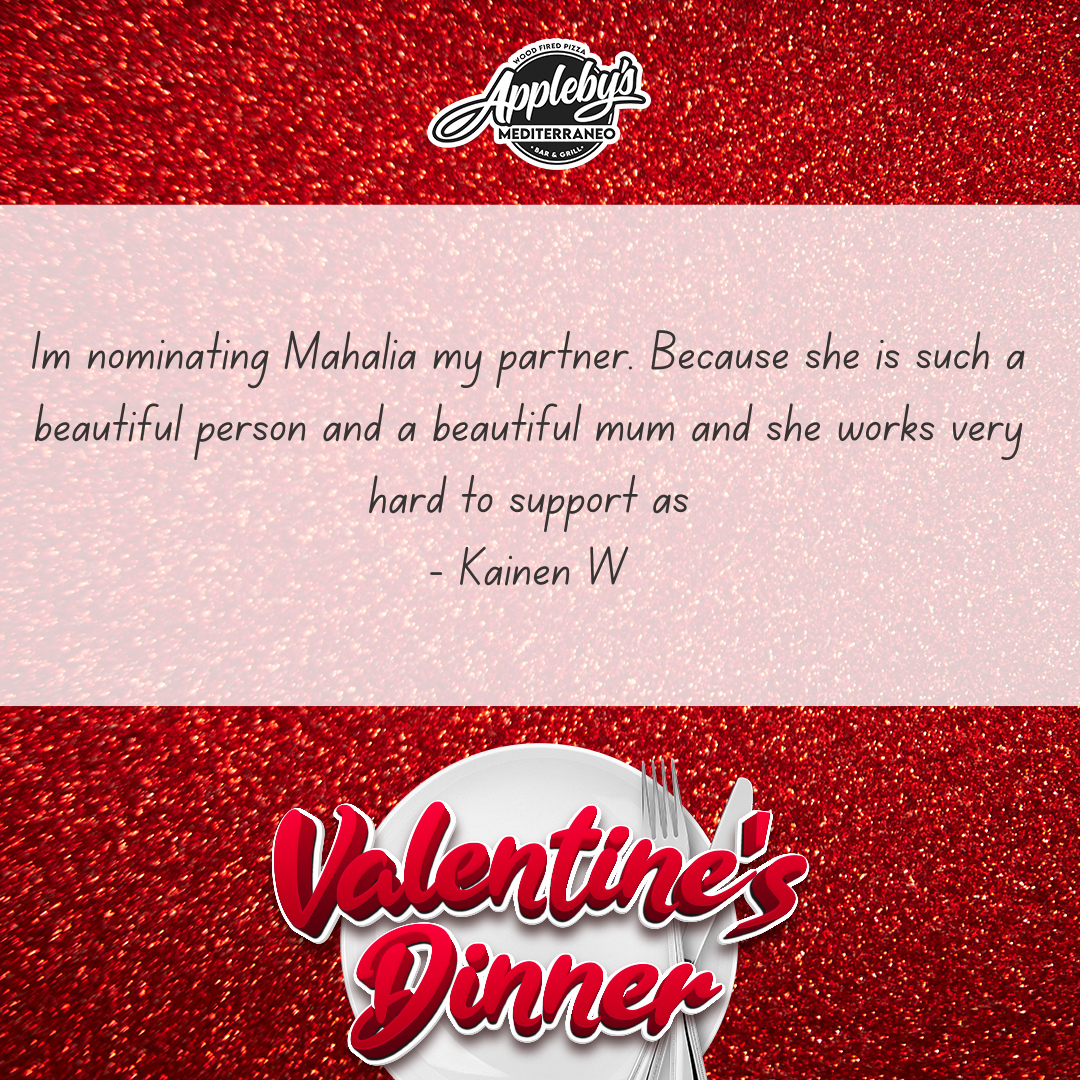 What You Could Win Selected entries will be shared right here, amplified on air for everyone to hear. Plus you could win an exclusive dining experience at Appleby’s Mediterraneo Bar and Grill, the perfect destination for life’s most meaningful celebrations.